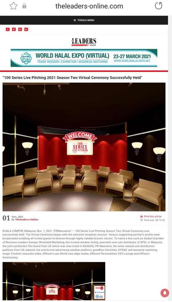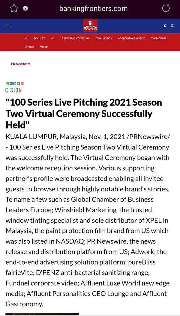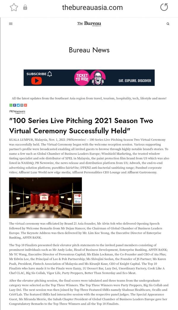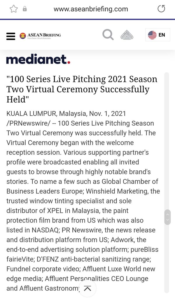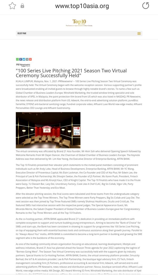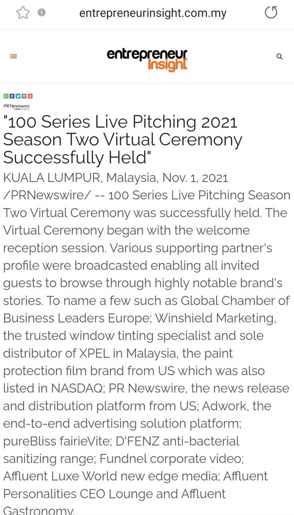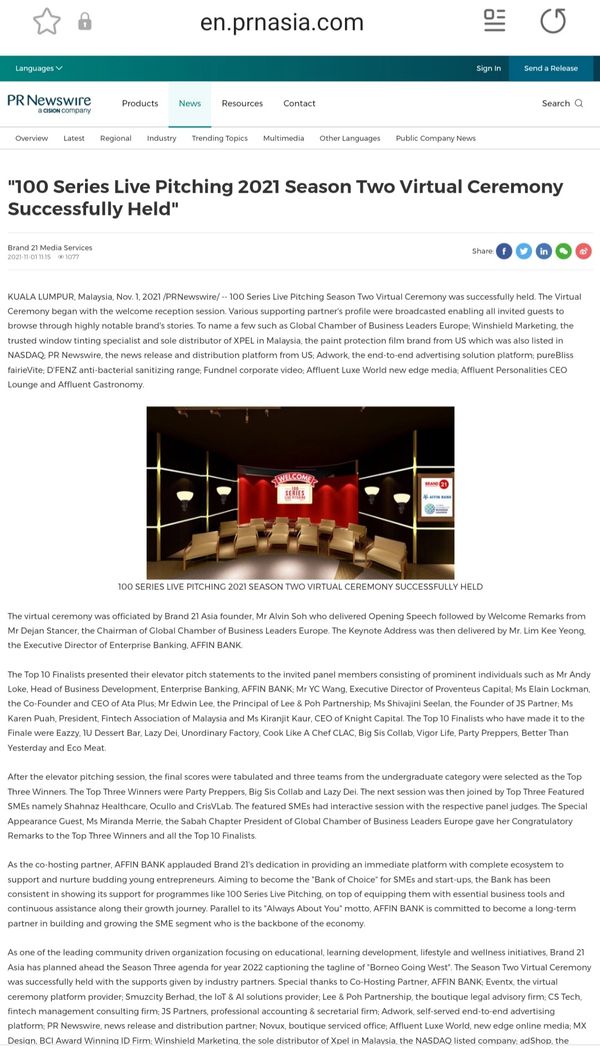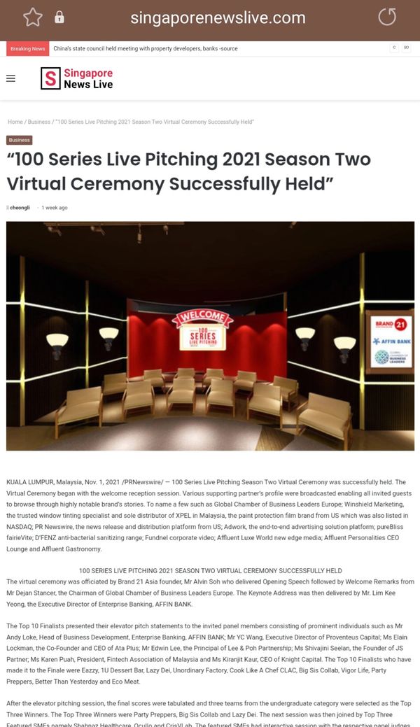 "100 Series Live Pitching 2021 Season Two Virtual Ceremony Successfully Launched"
