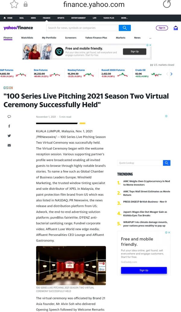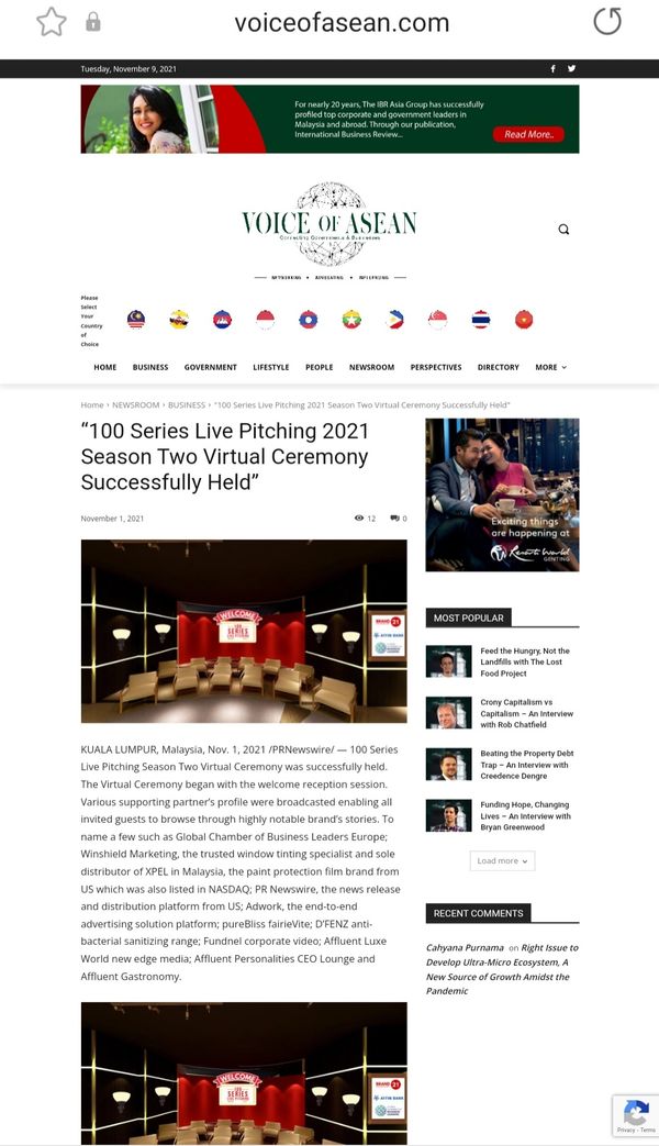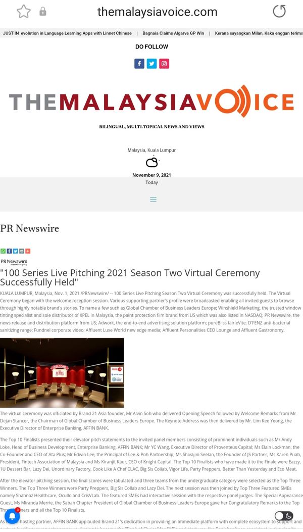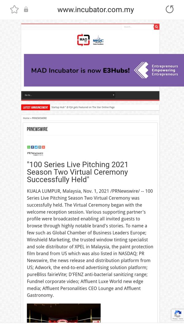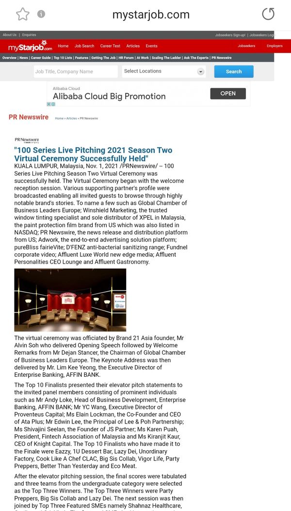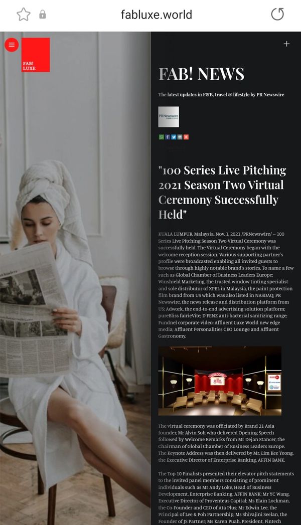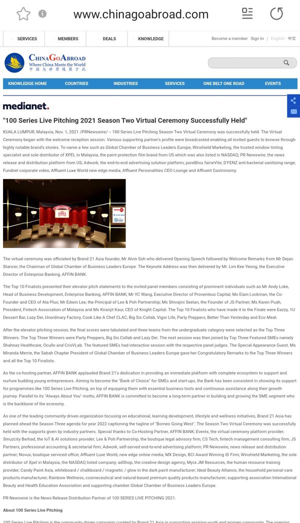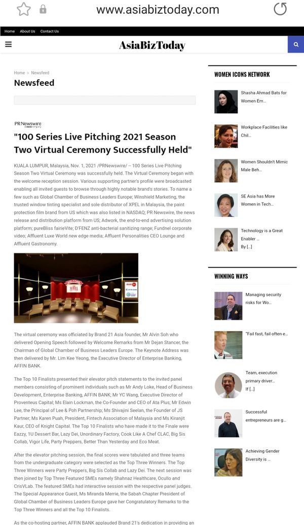 "100 Series Live Pitching 2021 Season Two Virtual Ceremony Successfully Launched"