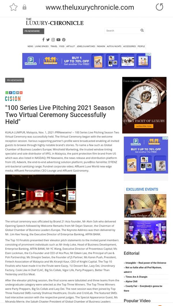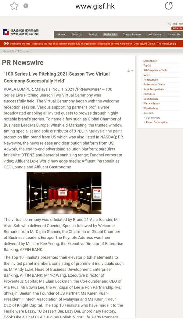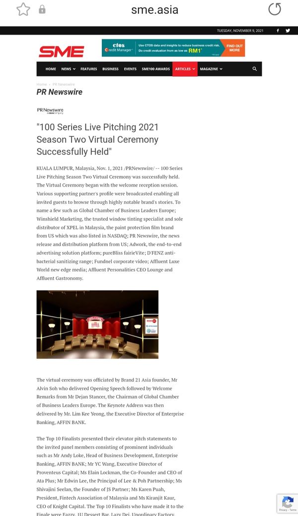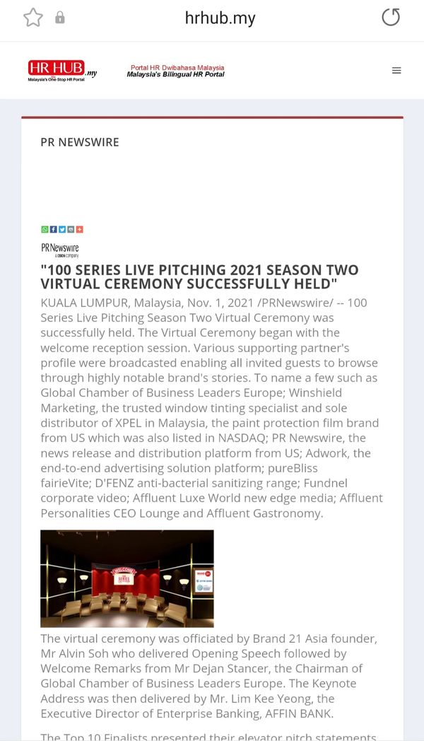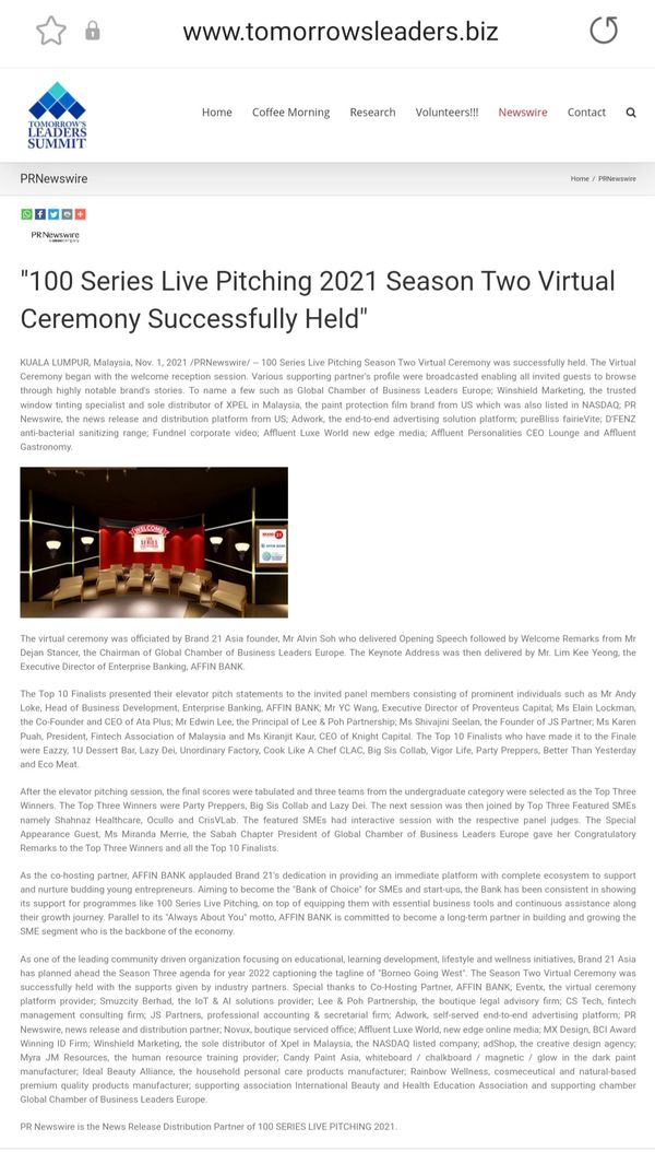 Thank You To Affin Bank Berhad, GCBL Europe, PR Newswire, Panel Judges & All Supporting Partners